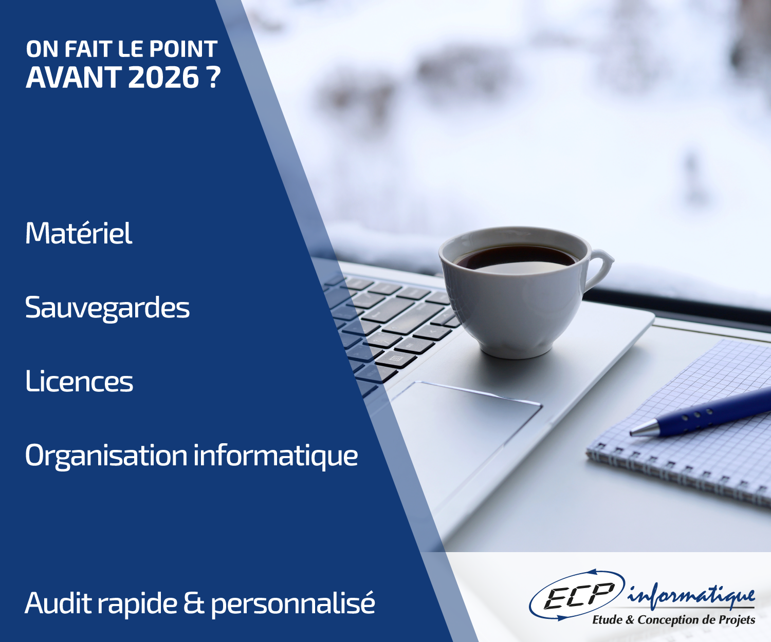 Chez ECP INFORMATIQUE, nous accompagnons les pros pour terminer l’année sereinement : audit rapide, mise à jour, conseils de gestion IT avant la nouvelle année.